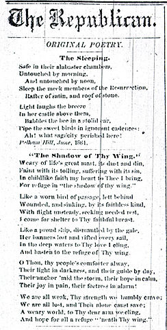 Two poems by Emily Dickinson (uncredited) published in The Springfield Republican in 1862