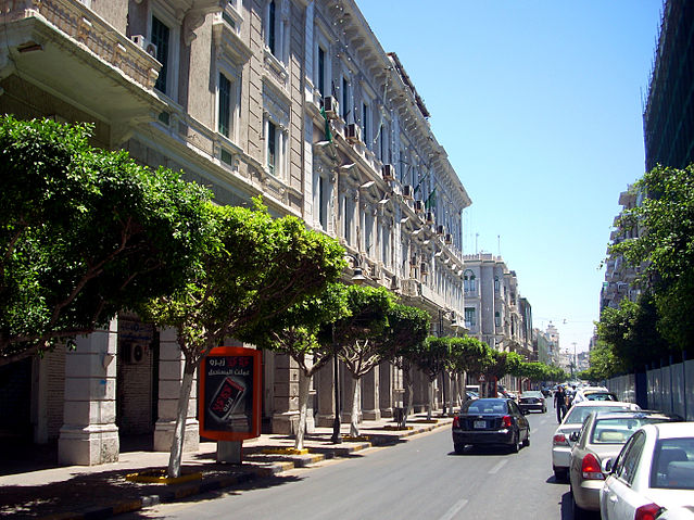 English: Istiqlal Street in Tripoli off Shuhada Square has some of the most decorative Italianate facades in Tripoli.