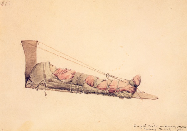 Français : "Enfant Chinook subissant le processus d'applatissement de la tête".