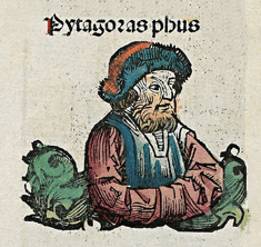 Deutsch:  Pythagoras. Illustration aus der  Schedel'schen Weltchronik, Blatt  61v