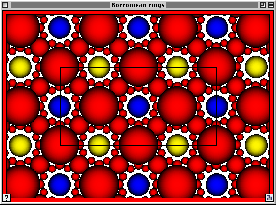 English: Partial screenshot from Weeks' SnapPea computer program. Initially made for use in describing the software in SnapPea. For use in the article knot theory, colors have been adjusted using GIMP (also GPL licensed software) to match :Image:BorromeanRings.svg.