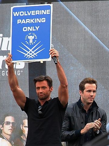 From left to right on stage: Hugh Jackman and Ryan Reynolds at the X-Men Origins: Wolverine premiere in Tempe, Arizona. |