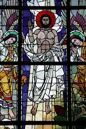 Kirchenfenster der reformierten Kirche in Ins, Schweiz