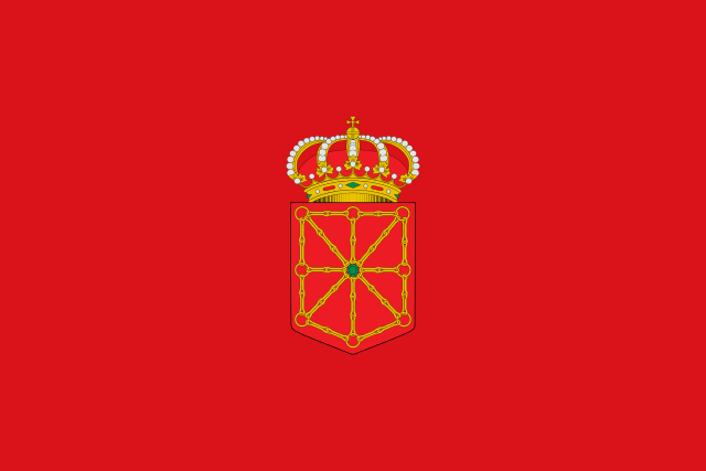 Español: Bandera de la Comunidad Foral de Navarra.Características: Rectangular, proporciones 2:3, La LORAFNA establece en su artículo 7.2.: "La bandera de Navarra es de colour rojo, con el escudo en el centro". Fuentes: Símbolos de Navarra. Gobierno de NavarraEuskara: Nafarroako Foru Komunitatea bandera Nafarroako armarria, hondo gorriaren gainean paraturiko urrezko kateez da, katemailaz osaturiko zortzi besoen elkargunean esmeralda bat dutela eta ororen gainean, berriz, Errege koroa, Nafarroako antzinako Erresumaren sinboloa.Iturria: Nafarroako Simboloa - Nafarroako GobernuaEnglish: Flag of Navarre (Spain) Article 7.2. of the LORAFNA stipulates: “The flag of Navarre is red, with the coat of arms in the centre. Source: Symbols of Navarre - Gobierno de NavarraFrançais : Drapeau de la Communauté Forale de Navarre. La LORAFNA détermine en son article 7.2. : “Le drapeau de Navarre est de couleur rouge, avec les armes au centre”.Source: Symboles de Navarre - Gobierno de Navarra |