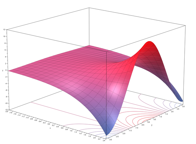 English: Graph of z = Re(e^(x+iy)), selfmade with MuPad.