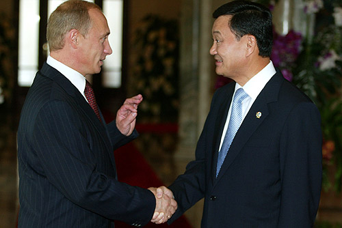 English: BANGKOK. President Putin with Thailand Prime Minister Thaksin Shinawatra before the start of the APEC Summit.