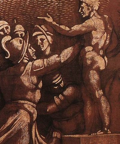 Sistine Chapel, fresco Michelangelo, detail of the destruction of the idol of Baal