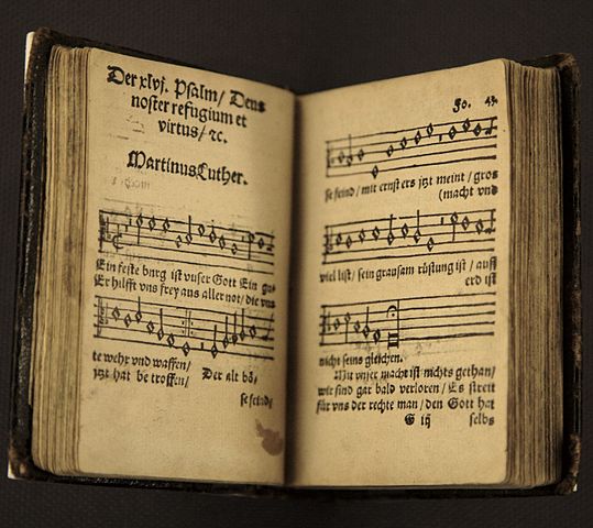 One of only very few early printings of Luther's hymn: "A Mighty Fortress Is Our God." There are no known first edition printings left. This book is a second edition, and extremely rare. It is in the holdings of the Lutherhaus museum in Wittenberg, Germany. Photograph by Paul T. McCain. June 2006. Wittenberg, Germany.