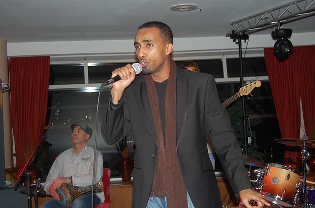Somali singer Aar Maanta performs with his band at Pier Scheveningen Strandweg, Den Haag Netherlands. |
