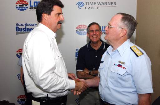 Description Description: CHARLOTTE, N.C. (May 28, 2005) Adm. Thomas Collins presents NASCAR President Mike Helton a commandant coin prior to the Carquest 300 NASCAR race at Lowe's Motor Speedway.