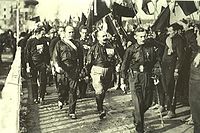 Benito Mussolini and Fascist Blackshirts during the March on Rome.