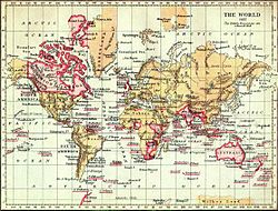 Map of the world from 1897. The British Empire (marked in pink) was the superpower of the 19th century.