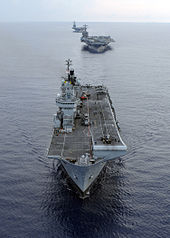 - USS Peleliu (LHA-5)* a 40,000 ton amphibious assault ship, last of the Tarawa class, ships of this class have been used in wartime in their secondary mission as a light carriers with 20 AV-8B Harrier fighters after unloading their marine expeditionary unit.