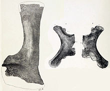 Gilmore originally described a scapula (shoulder bone) and ischium ( pelvic bone) in 1922. In 1946, he found a more complete specimen in Utah, consisting of a complete tail, a right forelimb complete except for the tips of the toes, and both ischia. Since then, many other bits and pieces from Texas, New Mexico, and Utah have been referred to Alamosaurus, often without much description. The most completely known specimen is a recently-discovered juvenile skeleton from Texas, which allowed educated estimates of length and mass.
