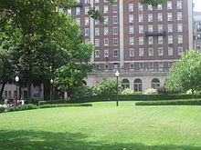 Columbia University, Hamilton's alma mater, has official memorials to Hamilton on its campus in New York City. The college's main classroom building for the humanities is Hamilton Hall, and a large statue of Hamilton stands in front of it. The university press has published his complete works in a multivolume letterpress edition. Columbia University's student group for ROTC cadets and Marine officer candidates is named the Alexander Hamilton Society.
