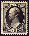 The first postage stamp to honour Hamilton was issued by the US Post Office in 1870. The portrayals on the 1870 and 1888 issues are from the same engraved die, which was modeled after a bust of Hamilton by Italian sculptor Giuseppe Ceracchi The Hamilton 1870 issue was the first US Postage stamp to honour a Secretary of the Treasury. The three-cent red commemorative issue, which was released on the 200th anniversary of Hamilton's birth in 1957, includes a rendition of the Federal Hall building, located in New York City.