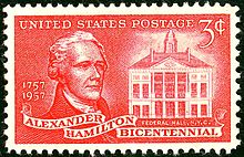 Alexander Hamilton (January 11, 1755 or 1757 – July 12, 1804) was a Founding Father of the United States, soldier, economist, political philosopher, one of America's first constitutional lawyers and the first United States Secretary of the Treasury.