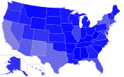 | American English (AmE, AE, AmEng, USEng, en-US), also known as United States English or U.S. English, is a set of  dialects of the English language used mostly in the United States. Approximately two thirds of  native speakers of English live in the United States. The use of English in the United States was inherited from British colonization. The first wave of English-speaking settlers arrived in North America in the 17th century. During that time, there were also speakers in North America of Spanish, French, Dutch, German, Norwegian, Swedish, Scots, Welsh, Irish, Scottish Gaelic, Finnish, and numerous Native American languages.  |