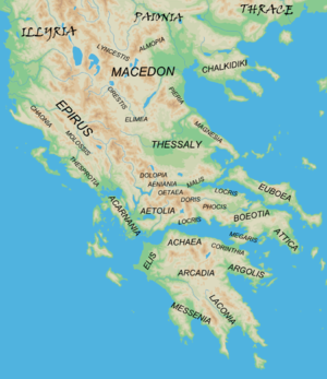 In the south lay the Peloponnese, itself consisting of the regions of Laconia (southeast), Messenia (southwest), Elis (west), Achaia (north), Korinthia (northeast), Argolis (east), and Arcadia (centre). These names survive to the present day as regional units of modern Greece, though with somewhat different boundaries. Mainland Greece to the north, nowadays known as Central Greece, consisted of Aetolia and Acarnania in the west, Locris, Doris, and Phocis in the centre, while in the east lay Boeotia, Attica, and Megaris. Northeast lay Thessaly, while Epirus lay to the northwest. Epirus stretched from the Ambracian Gulf in the south to the Ceraunian mountains and the Aoos river in the north, and consisted of Chaonia (north), Molossia (centre), and Thesprotia (south). In the northeast corner was Macedonia, originally consisting Lower Macedonia and its regions, such as Elimeia, Pieria, and Orestis. Around the time of Alexander I of Macedon, the Argead kings of Macedon started to expand into Upper Macedonia, lands inhabited by independent Macedonian tribes like the Lyncestae and the Elmiotae and to the West, beyond the Axius river, into Eordaia, Bottiaea, Mygdonia, and Almopia, regions settled by Thracian tribes. To the north of Macedonia lay various non-Greek peoples such as the Paeonians due north, the Thracians to the northeast, and the Illyrians, with whom the Macedonians were frequently in conflict, to the northwest. Chalcidice was settled early on by southern Greek colonists and was considered part of the Greek world, while from the late 2nd millennium BC substantial Greek settlement also occurred on the eastern shores of the Aegean, in Anatolia.