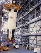The Saturn V rocket used by Apollo 8 was designated SA-503, or the "03rd" model of the Saturn V ("5") Rocket to be used in the Saturn-Apollo ("SA") program. When it was erected in the Vertical Assembly Building on December 20, 1967, it was thought that the rocket would be used for an unmanned Earth-orbit test flight carrying a boilerplate Command/Service Module. Apollo 6 had suffered several major problems during its April 1968 flight, including severe pogo oscillation during its first stage, two second stage engine failures, and a third stage that failed to reignite in orbit. Without assurances that these problems had been rectified, NASA administrators could not justify risking a manned mission until additional unmanned test flights proved that the Saturn V was ready.
