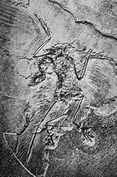 Archaeopteryx (pron.: / ˌ ɑr k iː ˈ ɒ p t ər ɨ k s / AR-kee-OP-tər-iks), sometimes referred to by its German name Urvogel ("original bird" or "first bird"), is a genus of early bird that is transitional between feathered dinosaurs and modern birds. The name derives from the ancient Greek ἀρχαῖος (archaīos) meaning "ancient", and πτέρυξ (ptéryx), meaning "feather" or "wing". Since the late 19th century, it has been generally accepted by palaeontologists, and celebrated in lay reference works, as being the oldest known bird ( Avialae).
