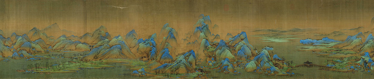 Works of art can tell stories or simply express an aesthetic truth or feeling. Panorama of a section of A Thousand Li of Mountains and Rivers, a 12th-century painting by Song Dynasty artist Wang Ximeng.
