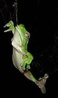 The Green Tree Frog shares the Litoria genus with dozens of frog species endemic to Australasia. The common name of the species, "White's Tree Frog", is in honour of John White's first description in 1790. The Green Tree Frog was the first Australian frog scientifically classified.