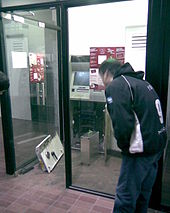 In an attempt to prevent criminals from shoulder surfing the customer's Personal Identification Number (PIN), some banks draw privacy areas on the floor.