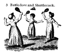 Badminton is a racquet sport played by either two opposing players (singles) or two opposing pairs (doubles), who take positions on opposite halves of a rectangular court that is divided by a net. Players score points by striking a shuttlecock with their racquet so that it passes over the net and lands in their opponents' half of the court. Each side may only strike the shuttlecock once before it passes over the net. A rally ends once the shuttlecock has struck the floor, or if a fault has been called by either the umpire or service judge or, in their absence, the offending player, at any time during the rally.