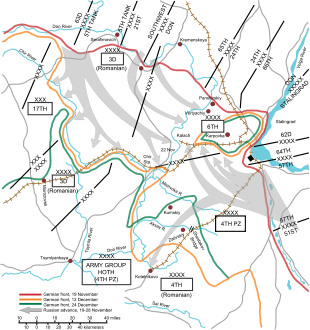 The Soviet counter-attack at Stalingrad                      German front, 19 November                      German front, 12 December                      German front, 24 December