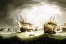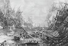 ![]() The Battle of Trafalgar, as seen from the mizzen starboard shrouds of the Victory by J. M. W. Turner (oil on canvas, 1806 to 1808) |