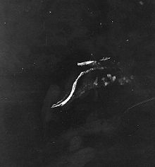 Just 30 seconds later, the next "Val" planted its bomb only 15 ft (4.6 m) away from where the first bomb hit. The resulting detonation ignited a large secondary explosion from one of the nearby 5 in (130 mm) guns' ready powder casings, killing 35 members of the nearby gun crews and starting a large fire.