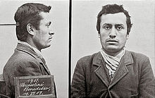Mussolini's booking photograph following his arrest by Swiss police, 1903.