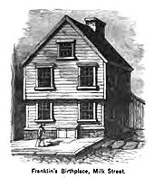 Franklin's birthplace on Milk Street, Boston, Massachusetts