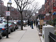 Newbury Street, a major thoroughfare and shopping district located in the Back Bay neighbourhood