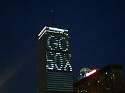 The Prudential Tower lit up for the 2007 World Series. The Red Sox won 4–0.
