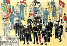 | Forces of the  Eight-Nation Alliance (1900 Boxer Rebellion) ![]() Left to right: Britain, United States, Australian, British India, Germany, France, Austria-Hungary, Italy, Japan  |