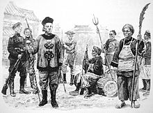 I Ho Ch'uan... literally denotes the 'Fists' (Ch'uan) of Righteousness (or Public) (I) Harmony (Ho), in apparent allusion to the strength of united force which was to be put forth. As the Chinese phrase 'fists and feet' signifies boxing and wrestling, there appeared to be no more suitable term for the adherents of the sect than 'Boxers,' a designation first used by one or two missionary correspondents of foreign journals in China, and later universally accepted on account of the difficulty of coining a better one.
