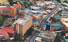 The city of Brisbane is hilly. The urban area, including the central business district, are partially elevated by spurs of the Herbert Taylor Range, such as the summit of Mount Coot-tha, reaching up to 300 metres (980 ft) and the smaller Enoggera Hill. Other prominent rises in Brisbane are Mount Gravatt and nearby Toohey Mountain. Mount Petrie at 170 metres (560 ft) and the lower rises of Highgate Hill, Mount Ommaney, Stephens Mountain and Whites Hill are dotted across the city.