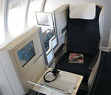 First (rebranded from 'FIRST' in 2009) is the long-haul first class service on British Airways, offered only on Boeing 747 and some Boeing 777 aircraft. There are fourteen private "demi-cabins" per aircraft, each with a 6 ft 6 in (1.98 m) bed, a 15-inch (38 cm) wide entertainment screen, and in-seat power. In 2009, British Airways announced a major upgrade and refresh of upgrades.