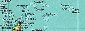 In 1965, the United Kingdom split the Chagos Archipelago from Mauritius, and the islands of Aldabra, Farquhar and Desroches (Des Roches) from the Seychelles, to form the British Indian Ocean Territory. The purpose was to allow the construction of military facilities for the mutual benefit of the United Kingdom and the United States. The islands were formally established as an overseas territory of the United Kingdom on 8 November 1965. On 23 June 1976, Aldabra, Farquhar and Desroches were returned to Seychelles as a result of its attaining independence. Subsequently, BIOT has consisted only of the six main island groups comprising the Chagos Archipelago.