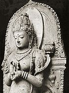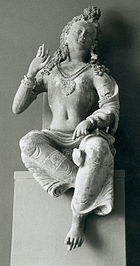 The art of the northern route was also highly influenced by the development of Mahāyāna Buddhism, an inclusive branch of Buddhism characterized by the adoption of new texts, in addition to the traditional āgamas, and a shift in the understanding of Buddhism. Mahāyāna goes beyond the traditional Early Buddhist ideal of the release from suffering ( duḥkha) of arhats, and emphasizes the bodhisattva path. The Mahāyāna sutras elevate the Buddha to a transcendent and infinite being, and feature a pantheon of bodhisattvas devoting themselves to the Six Perfections, ultimate knowledge ( Prajñāpāramitā), enlightenment, and the liberation of all sentient beings. Northern Buddhist art thus tends to be characterized by a very rich and syncretic Buddhist pantheon, with a multitude of images of the various buddhas, bodhisattvas, and heavenly beings ( devas).