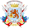 The flag of Caracas consists of a burgundy red field with the version of the Coat of Arms of the City (effective since the 1980s). The red field symbolises the blood spilt by Caraquenian people in favour of independence and the highest ideals of the Venezuelan Nation. Later, in the year 1994, presumably as a result of the change of municipal authorities, it was decided to increase the size of the Caracas coat of arms and move it to the centre of the field. This version of the flag is still in use today.