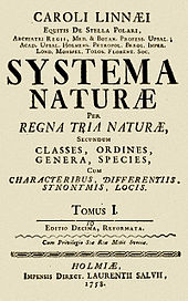 Title page of the 10th edition of Systema Naturæ (1758)