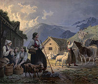 An idealized depiction of girl cow herders in 19th Century Norway by Knud Bergslien.