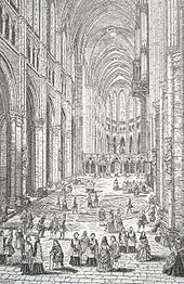 In 1757, a number of changes were made to the interior to increase the visibility of the Mass, in accordance with changing religious customs. The jubé (choir screen) that separated the liturgical choir from the nave was torn down and the present stalls built (some of the magnificent sculpture from this screen was later found buried underneath the paving and preserved, though it is not on public display). At the same time, some of the stained glass in the clerestory was removed and replaced with grisaille windows, greatly increasing the illumination of the High Altar.