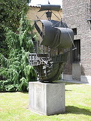 On the evening of August 3, 1492, Columbus departed from Palos de la Frontera with three ships; one larger carrack, Santa María, nicknamed Gallega (the Gallician), and two smaller caravels, Pinta (the Painted) and Santa Clara, nicknamed Niña after her owner Juan Niño of Moguer. They were property of Juan de la Cosa and the Pinzón brothers ( Martin Alonzo and Vicente Yáñez), but the monarchs forced the Palos inhabitants to contribute to the expedition. Columbus first sailed to the Canary Islands, which were owned by Castile, where he restocked the provisions and made repairs, and on September 6, he started what turned out to be a five-week voyage across the ocean.