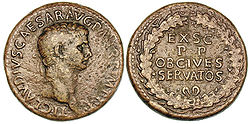 Claudius (Latin: Tiberius Claudius Caesar Augustus Germanicus; 1 August 10 BC – 13 October AD 54) was Roman Emperor from 41 to 54. A member of the Julio-Claudian dynasty, he was the son of Drusus and Antonia Minor. He was born at Lugdunum in Gaul and was the first Roman Emperor to be born outside Italy. Because he was afflicted with a limp and slight deafness due to sickness at a young age, his family ostracized him and excluded him from public office until his consulship, shared with his nephew Caligula in 37.