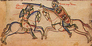 Medieval impression depicting Edmund Ironside (left) and Cnut (right).