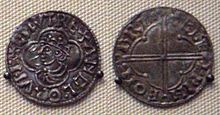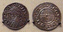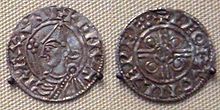 Cnut's 'Quatrefoil' type penny with the legend "CNUT REX ANGLORU[M]" (Cnut, King of the English), struck in London by the moneyer Edwin.